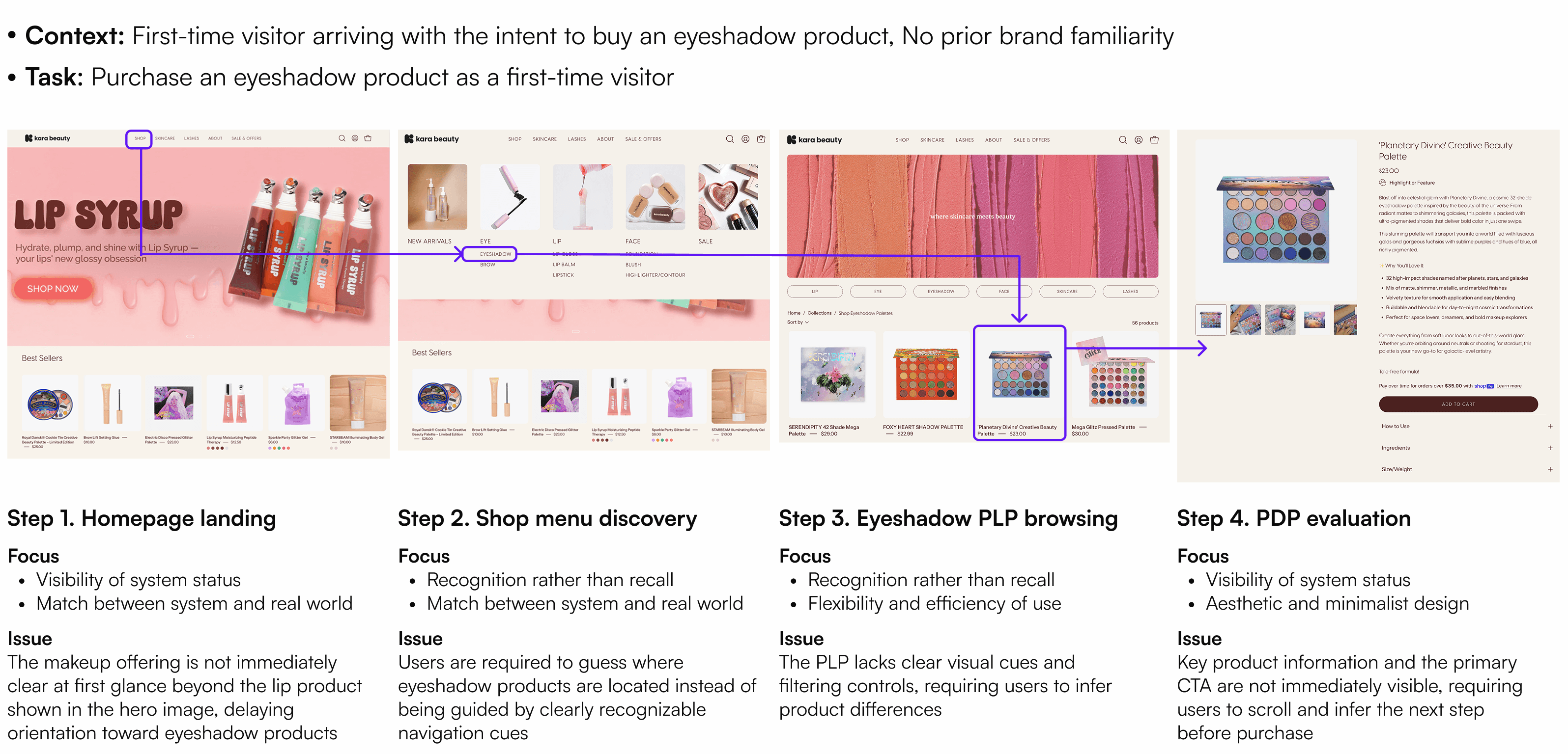 This user flow analysis was conducted to validate whether the product discovery flow aligns with first time users’ mental models and supports quick, confident purchasing decisions.