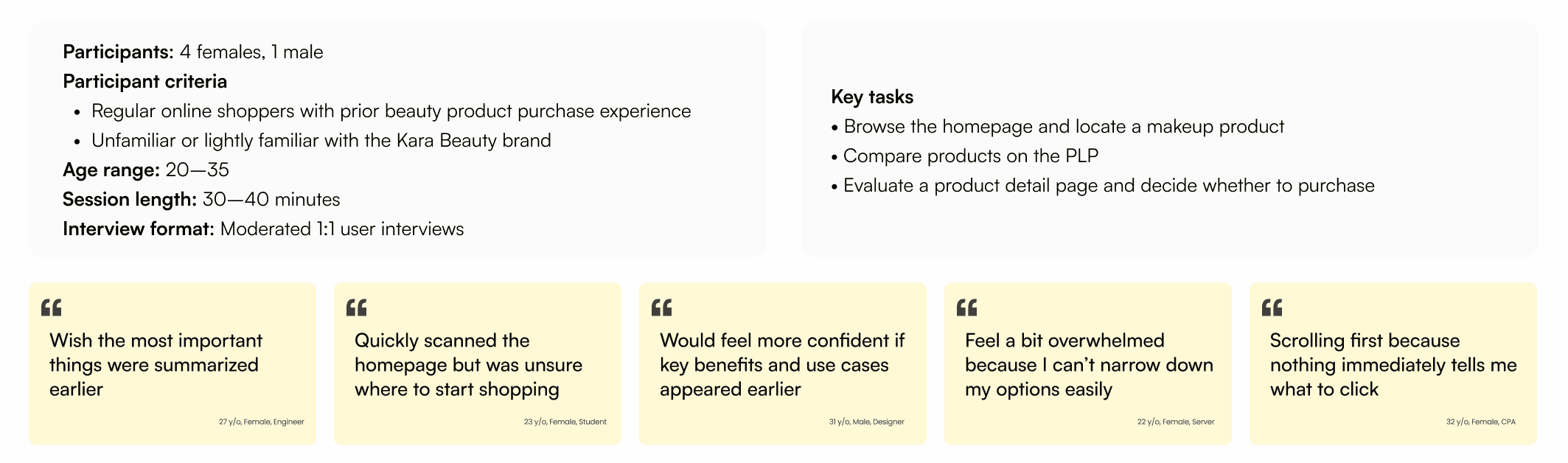 Across Home, PLP, and PDP, unclear entry points, weak information hierarchy, and delayed benefits made it difficult for users to quickly understand where to start, how to compare options, and when to feel confident enough to purchase.