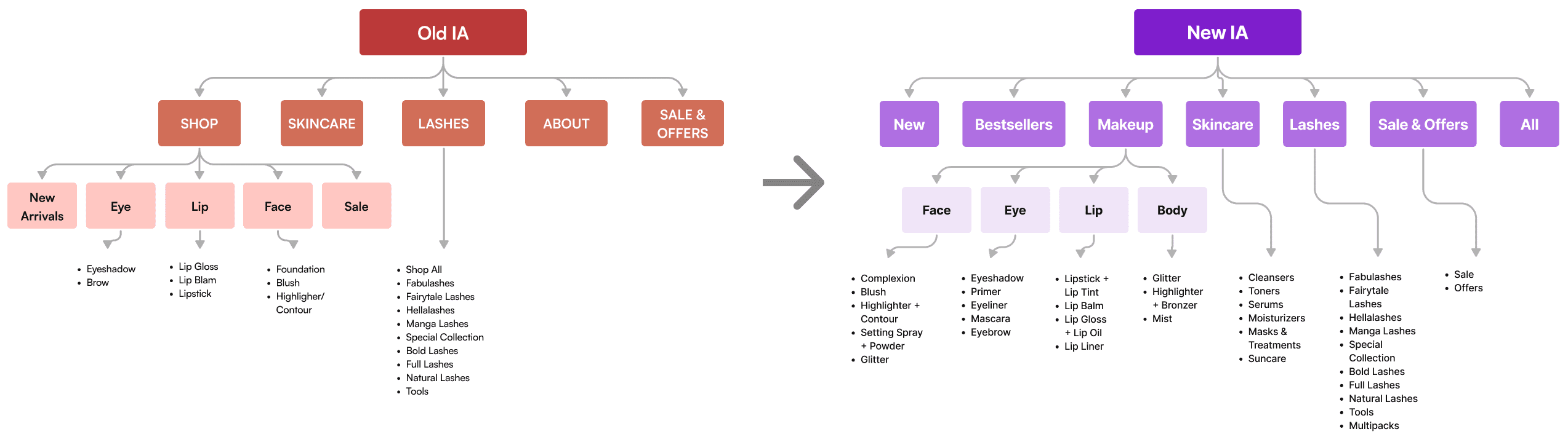 To address unclear entry points and navigation confusion, I redesigned the information architecture to better align categories with user expectations and shopping intent.