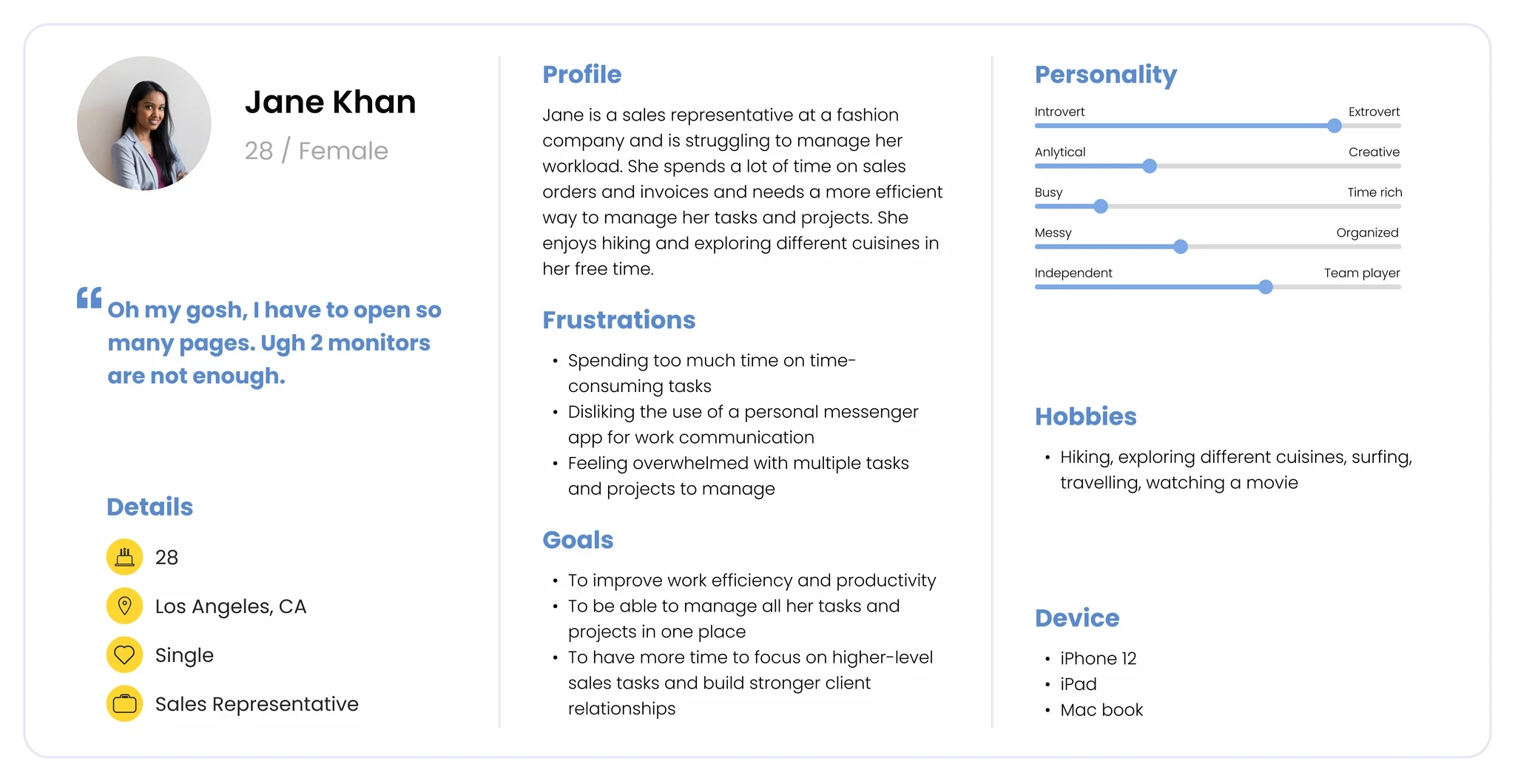 By understanding their preferences and requirements, I gained directionality on which area the new product should focus.